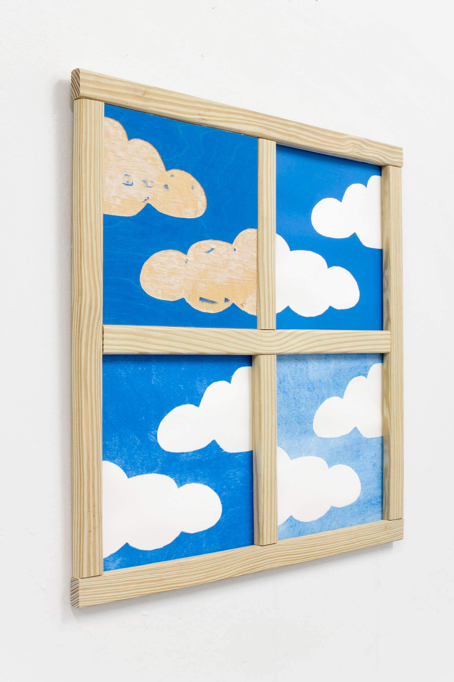 The Window 1, wood, plywood, woodblock print on paper, 24” x 24”, 2018
